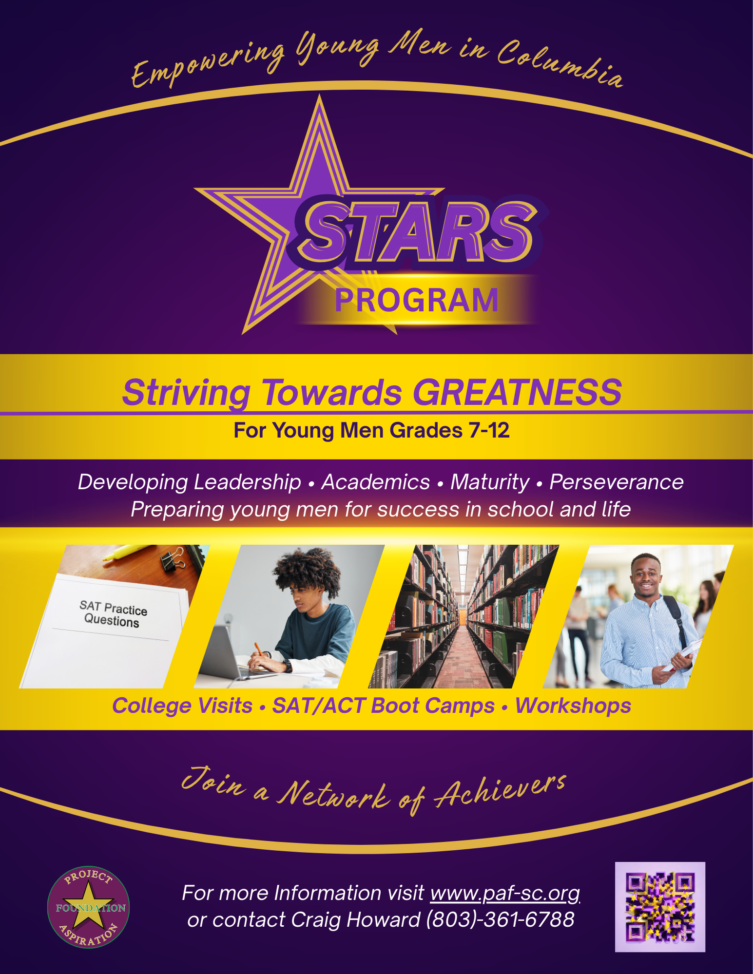 The purpose of Project Aspiration Foundation (PAF) is to develop a comprehensive program of support for the youth in the greater Columbia area and to conduct programs and activities that will help them to gain access to higher educational opportunities and to societal benefits that are usually associated with this achievement.